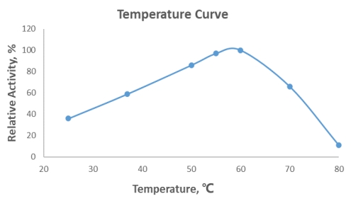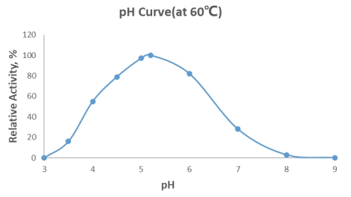 One Lactase activity unit (U) is defined as the amount of enzyme which degrades oNPG to liberate 1 µmol o-nitrophenol in 1 min at 60℃, pH5.2.